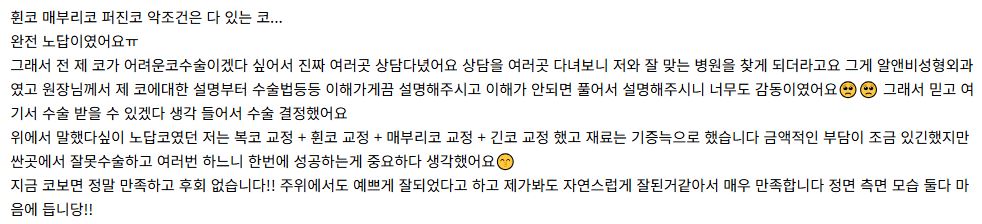 그래서 전 제 코가 어려운 수술이겠다 싶어서 여러곳 상담 다녔어요 상담을 여러곳 다녀보니 저와 잘 맞는 병원을 찾게 되더라고요 그게 알앤비성형외과였고