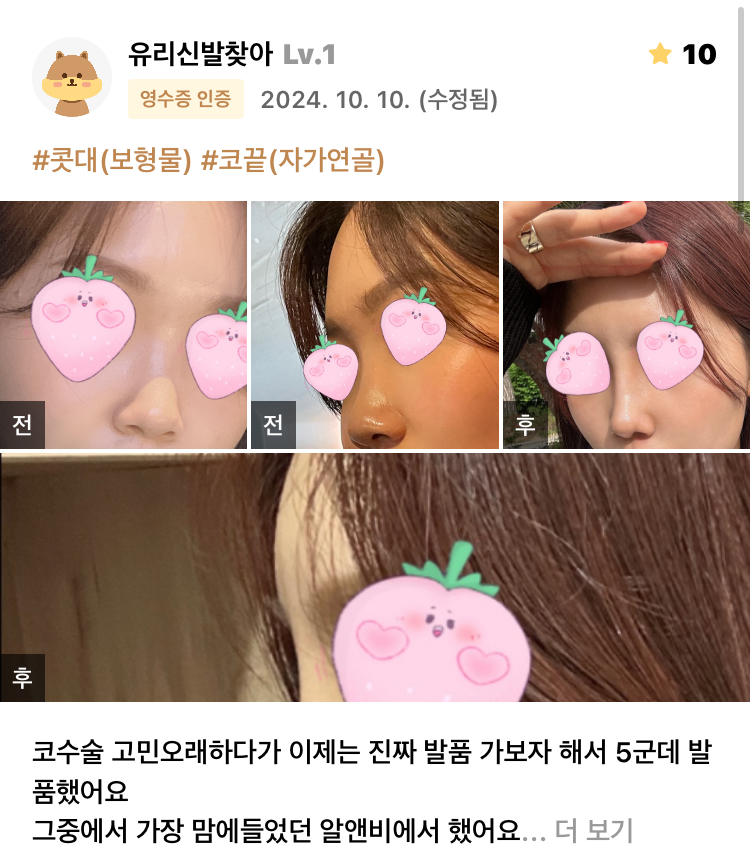 예쁜코로 만들어주셨어요 붓기도 빠지고 너무 만족합니당