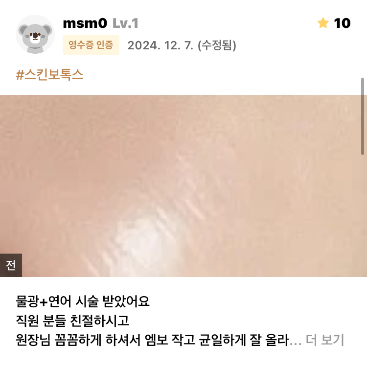 원장님 꼼꼼하게 하셔서 엠보 작고 균일하게