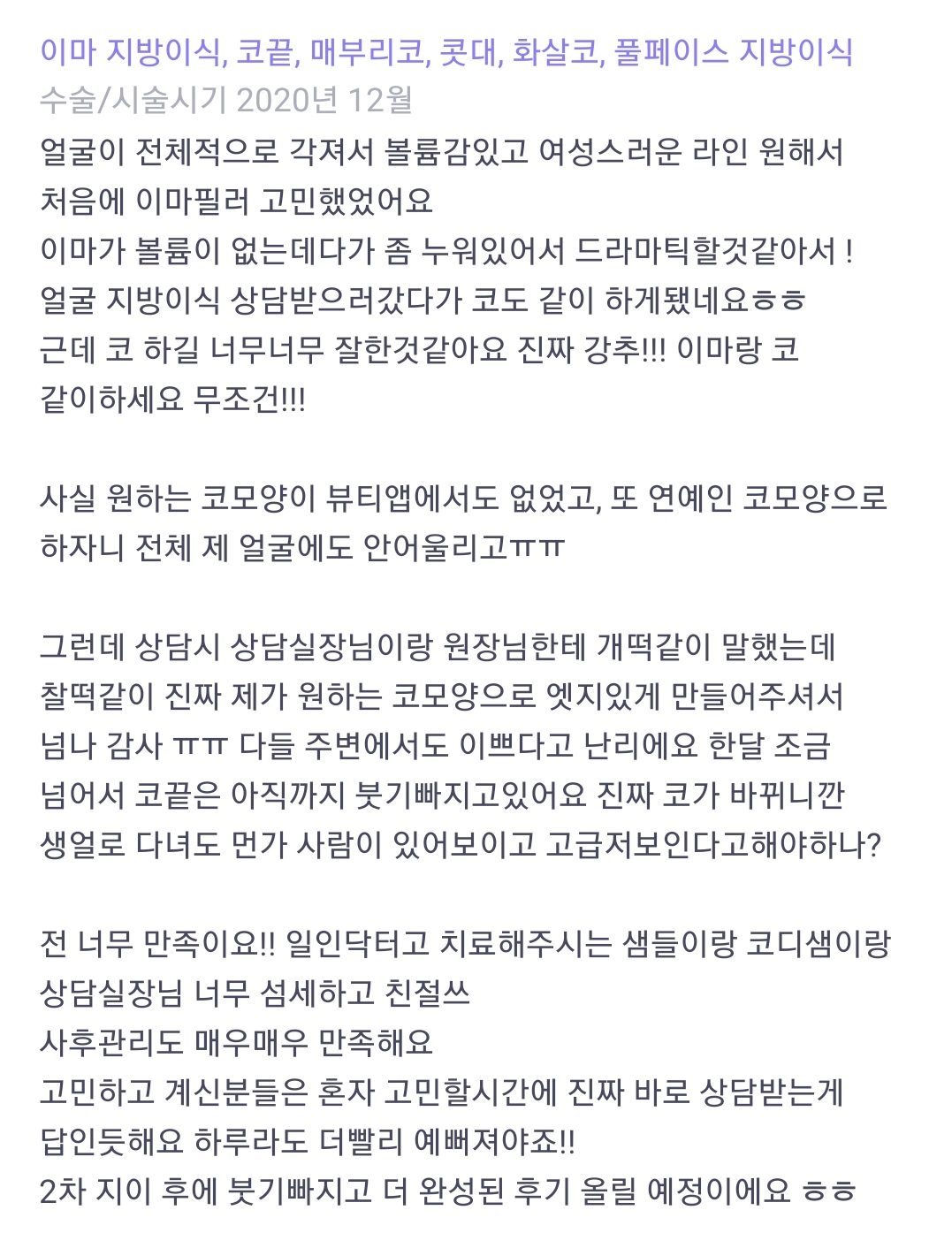 얼굴 지방이식 상담 받으러 갔다가 코도 같이 했어요 진짜 강추!!
